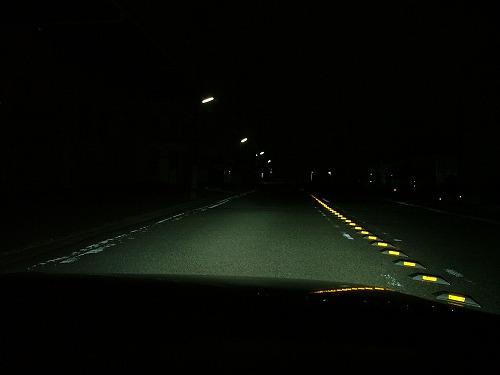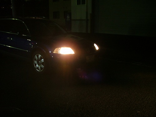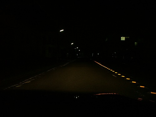 | さて、それでは比較です。 ハロゲンもHIDも絞り値、シャッタースピードは同じで撮ってます。 左がハロゲン、右がHIDです。 ま、書かなくてもわかると思いますが。 |