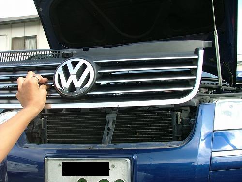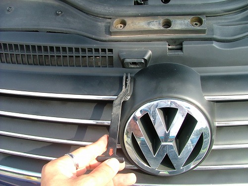 | 上向きからとまってるトルクスを2ヶ所外して、グリルを上方向に持ちあげると外れます。 いちばん右のクリップが固くて外しずらかったです。 グリルを手前に倒して、後ろから手を入れてクリップを外しました。 |