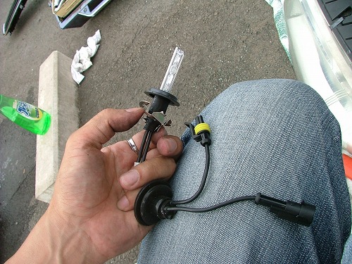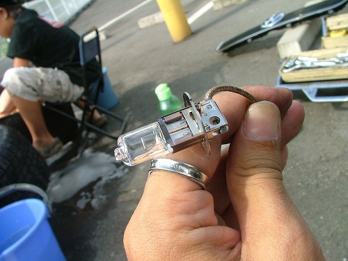 | バルブを止める台座にコネクタを通します。 ぎりぎり通らないくらいで、コネクタをちょっとつぶして無理やり通しました。 ここで問題が。 ロービームは明かりが上に反射して地面を照らします。 しかし台座の向きがノーマルのままだとバルブのセラミック?の部分が上に来てしまい、 照射部分に影響が出そうな気がします。 というわけでバルブ側の台座をちょっとニッパで切って180度回転させて取り付けました。 これが正しいやり方かどうかは不明。 |