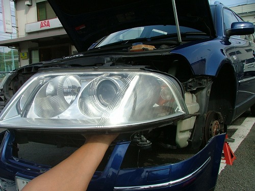 トルクス4か所と左のバンパー止めるステー部分も2ヶ所外すとライトユニットが外れます。 ここまで全部見える位置のネジなので別に難しくはありませんでした。 |