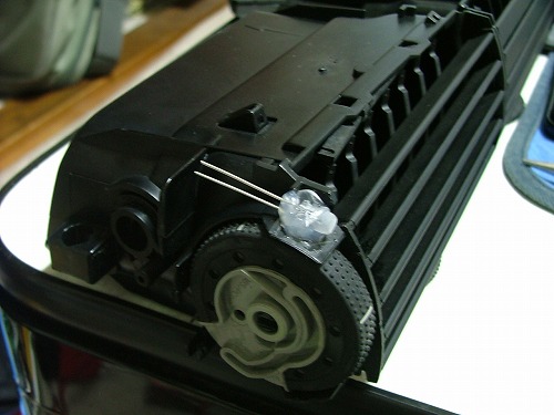 もうだいぶ進んじゃったけど、 車から外して、 電球部分外して、 電球から正面部分まで光をつなぐプラスチック外して、 イルミ部分にLEDを接着。 |