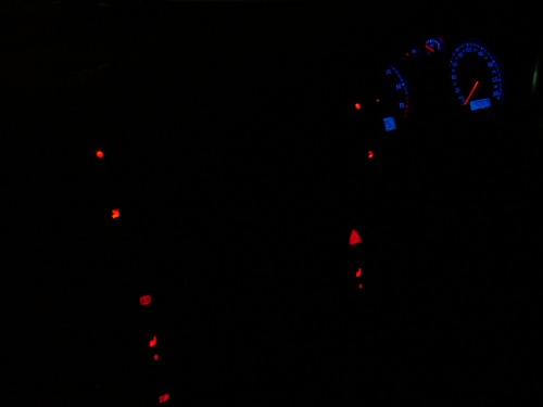 | どうせなので全部LED化。 抵抗は明るさをチェックしながら調整。 いくつ入れたっけかな。。だいぶ暗くしてちょうどいい感じだった。 |